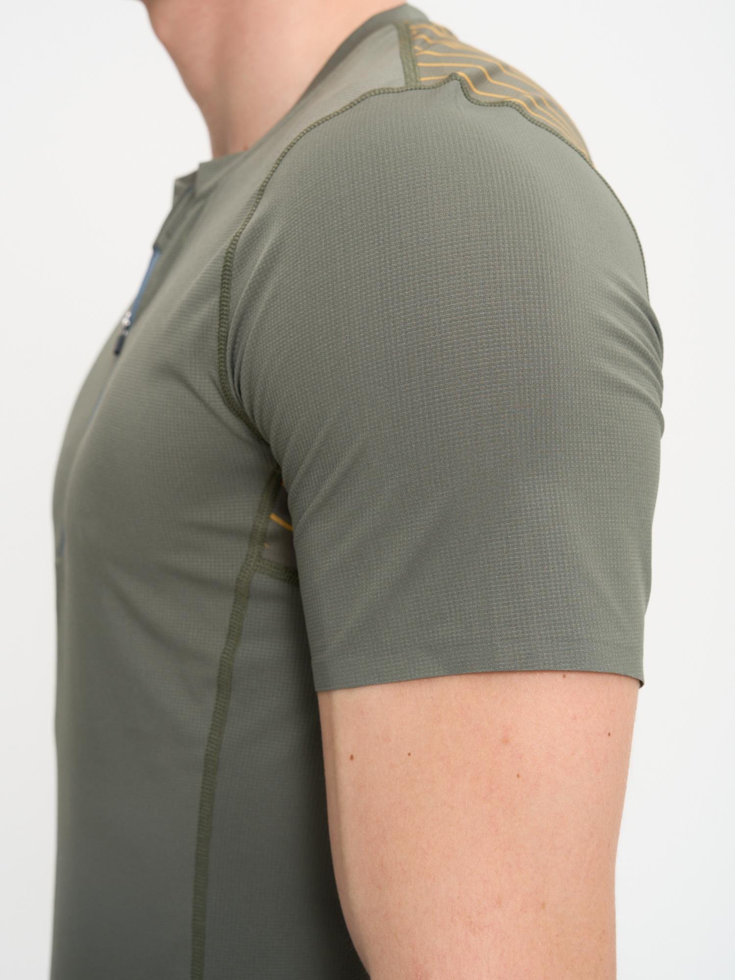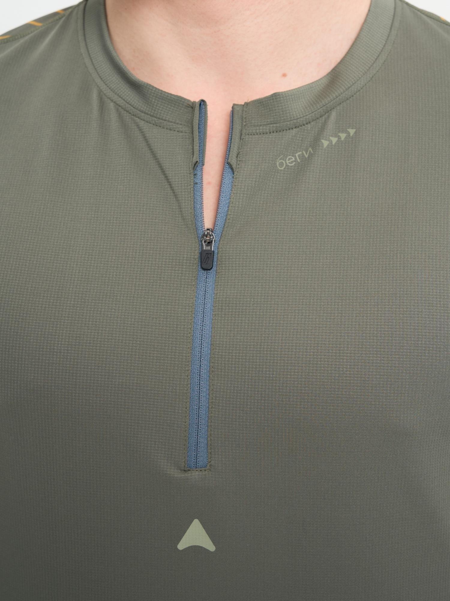 Футболка "Пульс" посадки SLIM FIT для тренировок и стартов по пересеченной местности. Изделие оснащено фронтальной молнией от середина груди для удобства одевания, а так же для дополнительной вентиляции в жаркую погоду. Вставки по спине и в подмышечной зоне из сетчатого материала, более легкого и тянущегося для комфортной посадки, и дополнительного отведения влаги. В изделии предусмотрены светоотражающие элементы обеспечивающие безопасность в темное время суток. Для предотвращения скопления влаги предусмотрены проклеенные швы на рукавах и по нижнему краю изделия.