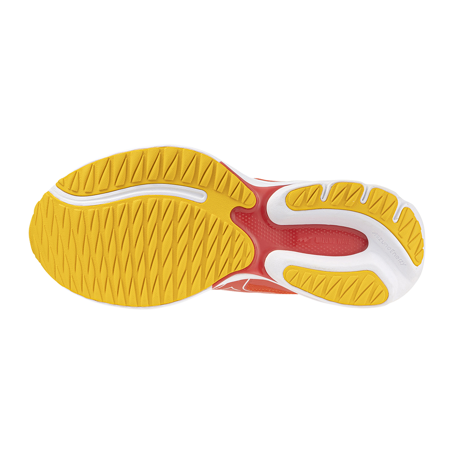 MIZUNO WAVE PLATE Амортизирующая пластина в промежуточной подошве, которая равномерно распределяет энергию удара при приземлении, что приводит к более мягкому шагу и лучшей устойчивости; одновременно пластина WAVE PLATE обеспечивает возврат энергии и способствует движению вперед, повышая эффективность бега