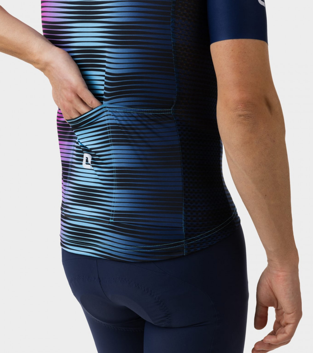Благодаря сплошному геометрическому принту Dinamica сочетает в себе удобную посадку на весь день и необходимые характеристики для катания в жаркую погоду. В соответствии с нашим картографированием тела в нем используются материалы с высокой воздухопроницаемостью и влагоотведением, которые ловко отводят пот с вашего тела. Трубчатые рукава с необработанным краем сидят как вторая кожа, а низ с силиконовой подкладкой обеспечивает хорошую посадку джерси поверх шорт. Сзади есть три просторных кармана и светоотражающие детали для езды в пробках и туннелях.